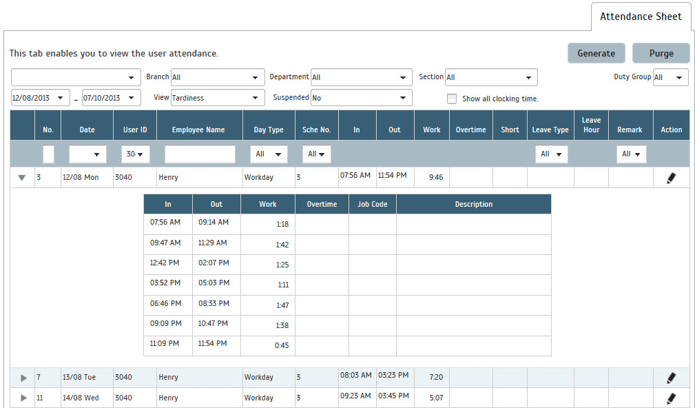 Attendance records are available for editing and viewing by user and authorized administrators.